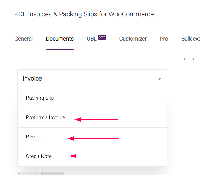 Our PDF Invoices for WooCommerce – Professional extension offers access to the following new document types: