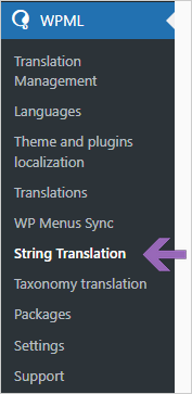 When both plugins are active, you should see a new option in your WordPress Dashboard > WPML > String Translation: