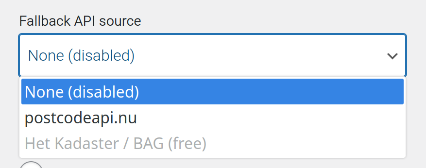 - Appearance, postcode.eu API source selected: