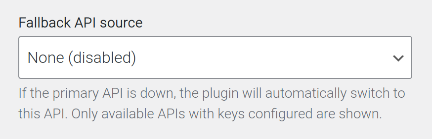 If the primary API is down, the plugin will automatically switch to this API. Only available APIs with keys configured are shown.